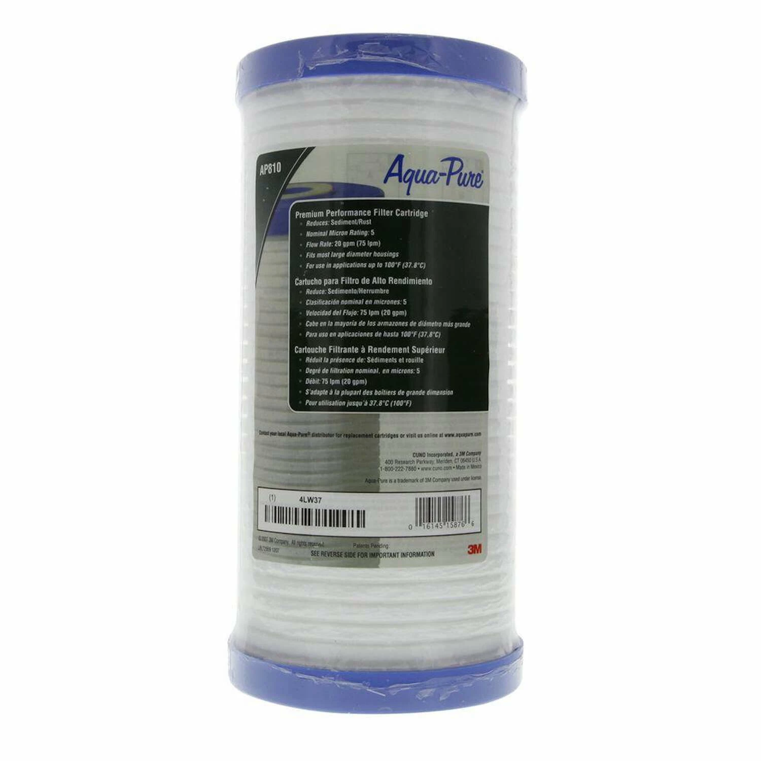 Our 3M Aqua-Pure Whole House Large Sump Replacement Water Filter Drop-in Cartridge AP810 is a standard 4.5” diameter drop-in cartridge that is manufacturer tested and verified to reduce sediment down to 5 micron nominal. Its rigid construction from our polypropylene manufacturing process, helps capture and retain sediment from within your water. With these features, our AP810 is a great choice in water filtration and is ideal for larger homes with at least 2.5 bathrooms. Large diameter (5 micron nominal) Graded density/resin bonded For standard dirt/rust removal Cold water only