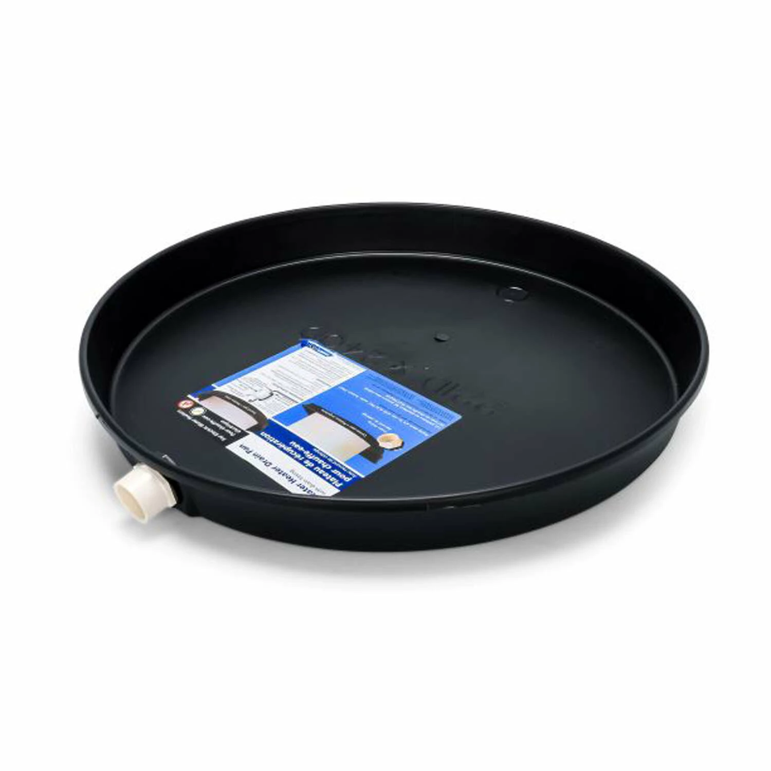 The Camco 22 in. ID plastic water heater pan is made for use under electric water heaters to help protect your floors from leaks or runoff from TandP valve activation. It is made from durable polypropylene plastic and comes with a 1-1/2 in. PVC drain fitting. A drain opening is set in the side to allow you to direct any water to the outside or to the nearest drain.