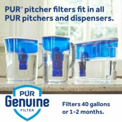 To ensure maximum contaminant removal, remember to replace your PUR filter after 40 gallons of use or every 2 months. Filters twice as fast with Maxion technology LockFIt design for easier filter change 1 filter will provide up to 40 gallons of clean water (approx 2 months) Reduces certain pesticides, pharmaceuticals, heavy metals, chlorine (taste & odor) and more Use with PUR Basic 7 Cup Pitcher PPT700W (Ace #6286793), PUR Ultimate 7 Cup Pitcher PPT711W (Ace #6406367), PUR Ultimate 11 Cup Pitcher PPT111W (Ace #4790226), or PUR 30 Cup Dispenser DS1800Z (Ace #4201406) PUR does not filter microbes.