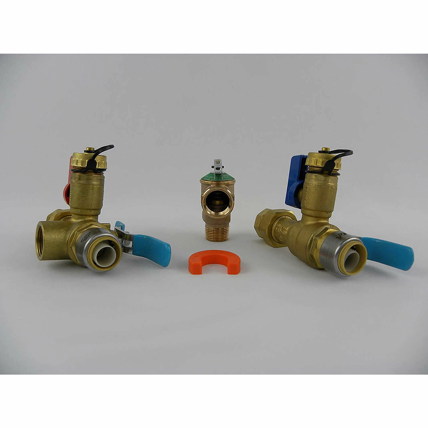 The SharkBite Tankless Water Heater Service Valves Kit connects tankless water heaters to your water supply and allows for easy control and hassle-free maintenance. Included in the package are Hot and Cold Valves and a Pressure relief valve. The Valves connect to the Tankless water Heater with a 3/4 in. IPS Female Connection and then connect to water distribution system. Heavy duty forged brass valves with full port main flow channel SharkBite push-to-connect connections simplify installation and are compatible on copper, PEX and CPVC Ideal for working in tight spaces Can be rotated for easier and faster installation