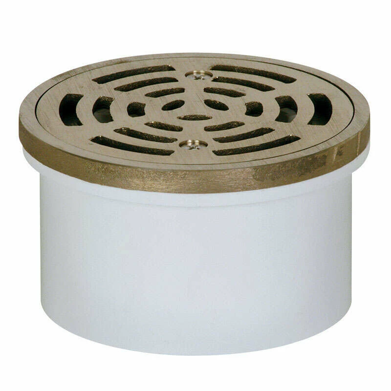 Sioux Chief heavy duty general purpose floor drain General Purpose Floor Drain Cast metal ring and strainer Fits over 3 inch and inside 4 inch SCH 40 DWV Machine screws and threaded brass inserts in drain body make strainer replacement fast and easy