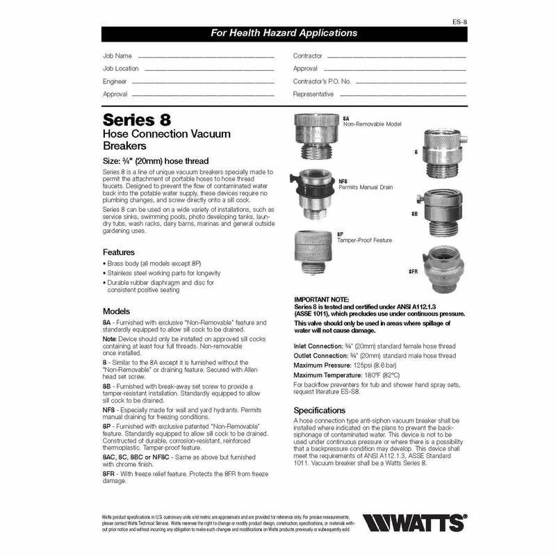 Be the first to review “Watts 3/4 In. MNPT Brass Vacuum Breaker 3/4 In. FNPT 1 Pk” Cancel reply