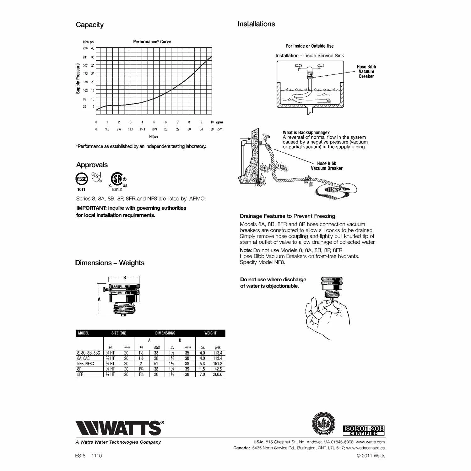 | Proposition 65 Warning | This product contains chemicals known to the State of California to cause cancer and birth defects or other repoductive harm. For more information: http://www.watts.com/prop65 |